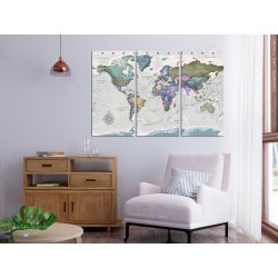 Pinnwand Bild "Korkbild - World Destinations (3 Parts)" ist ein Produkt für Personen die originelle Schmuckstücke für die Wand suchen. Ökologisches Material und interessantes Muster "Korkbild - World Destinations (3 Parts)" verursachen, dass die einfache Korktafel sich in ein stilvolles Accessoire verändert. Zu den Bildern auf Korken kann man Reißzwecken anheften und die besuchten Orte auf der Landkarte markieren oder Notizen anheften. Das Bild "Korkbild - World Destinations (3 Parts)" auf Kork ist viel leichter als die traditionellen Wanddekorationen. Dank dem können die dekorativen Korktafeln an jedem Platz in Deiner Wohnung oder Büro gehängt werden. Die Leinwand mit dem Ausdruck wird auf die Korktafel angebracht. Dank dem, charakterisiert sich der Aufdruck mit deutlichen Farben und gibt kleinste Details wieder. Stecke die Reißzwecken oder Notizen an und kreire Dein individuelles Muster auf Deiner Wand! Die Korklandkarte ist eine exzellente Idee als Geschenk für Reiseliebhaber!