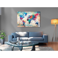 Pinnwand Bild "Korkbild - World Map: Colourful Madness" ist ein Produkt für Personen die originelle Schmuckstücke für die Wand suchen. Ökologisches Material und interessantes Muster "Korkbild - World Map: Colourful Madness" verursachen, dass die einfache Korktafel sich in ein stilvolles Accessoire verändert. Zu den Bildern auf Korken kann man Reißzwecken anheften und die besuchten Orte auf der Landkarte markieren oder Notizen anheften. Das Bild "Korkbild - World Map: Colourful Madness" auf Kork ist viel leichter als die traditionellen Wanddekorationen. Dank dem können die dekorativen Korktafeln an jedem Platz in Deiner Wohnung oder Büro gehängt werden. Die Leinwand mit dem Ausdruck wird auf die Korktafel angebracht. Dank dem, charakterisiert sich der Aufdruck mit deutlichen Farben und gibt kleinste Details wieder. Stecke die Reißzwecken oder Notizen an und kreire Dein individuelles Muster auf Deiner Wand! Die Korklandkarte ist eine exzellente Idee als Geschenk für Reiseliebhaber!