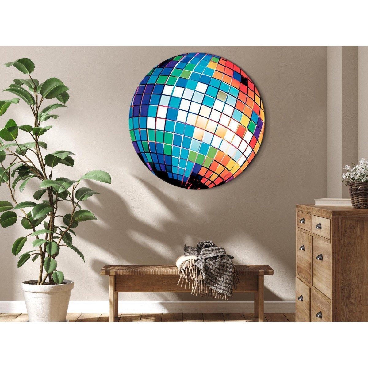 runde Wandbild "Rundes Bild - Blue disco ball" ist die perfekte Wahl! Bei der Entwicklung dieses Produkts haben wir das Beste aus unserem Angebot, nämlich einzigartiges Design, sorgfältige Verarbeitung und Innovation in Form eines von unseren Designern entworfenen runden Rahmens, kombiniert. Dadurch erhalten unsere beliebten und trendigen Designs eine neue Form und können ein noch breiteres Publikum erreichen.