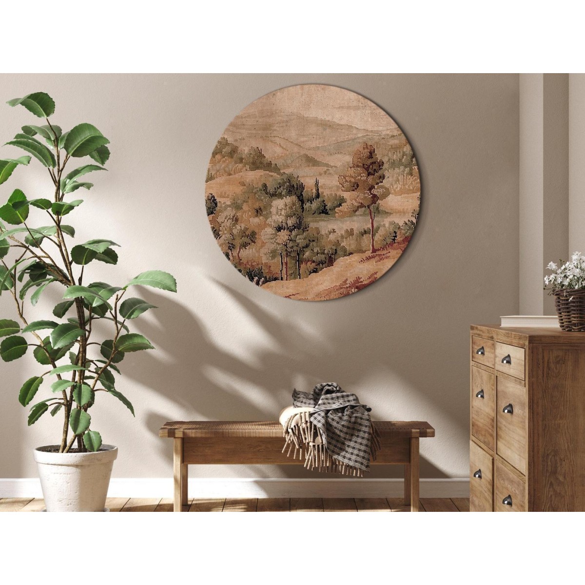 runde Wandbild "Rundes Bild - Mediterranean landscape - old tapestry with a hill and a lake" ist die perfekte Wahl! Bei der Entwicklung dieses Produkts haben wir das Beste aus unserem Angebot, nämlich einzigartiges Design, sorgfältige Verarbeitung und Innovation in Form eines von unseren Designern entworfenen runden Rahmens, kombiniert. Dadurch erhalten unsere beliebten und trendigen Designs eine neue Form und können ein noch breiteres Publikum erreichen.