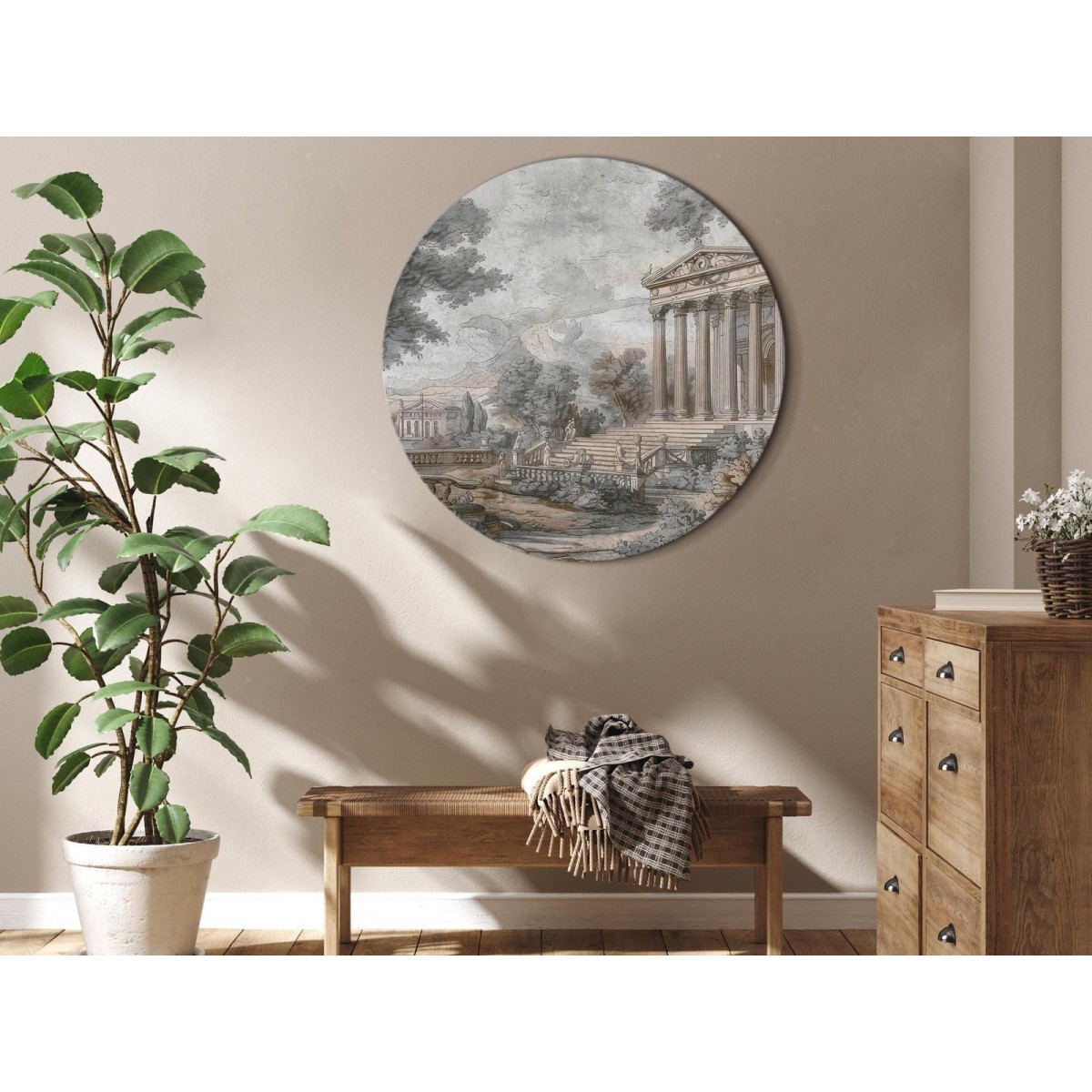 runde Wandbild "Rundes Bild - Temple on a hill - Greek architecture in subdued colours" ist die perfekte Wahl! Bei der Entwicklung dieses Produkts haben wir das Beste aus unserem Angebot, nämlich einzigartiges Design, sorgfältige Verarbeitung und Innovation in Form eines von unseren Designern entworfenen runden Rahmens, kombiniert. Dadurch erhalten unsere beliebten und trendigen Designs eine neue Form und können ein noch breiteres Publikum erreichen.