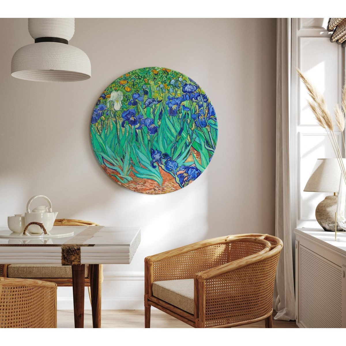 runde Wandbild "Rundes Bild - Vincent Van Gogh - Irises" ist die perfekte Wahl! Bei der Entwicklung dieses Produkts haben wir das Beste aus unserem Angebot, nämlich einzigartiges Design, sorgfältige Verarbeitung und Innovation in Form eines von unseren Designern entworfenen runden Rahmens, kombiniert. Dadurch erhalten unsere beliebten und trendigen Designs eine neue Form und können ein noch breiteres Publikum erreichen.
