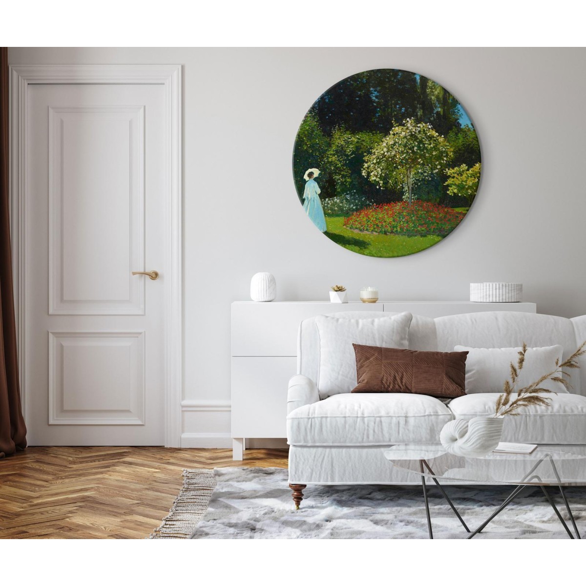 runde Wandbild "Rundes Bild - Claude Monet – Woman in the Garden" ist die perfekte Wahl! Bei der Entwicklung dieses Produkts haben wir das Beste aus unserem Angebot, nämlich einzigartiges Design, sorgfältige Verarbeitung und Innovation in Form eines von unseren Designern entworfenen runden Rahmens, kombiniert. Dadurch erhalten unsere beliebten und trendigen Designs eine neue Form und können ein noch breiteres Publikum erreichen.