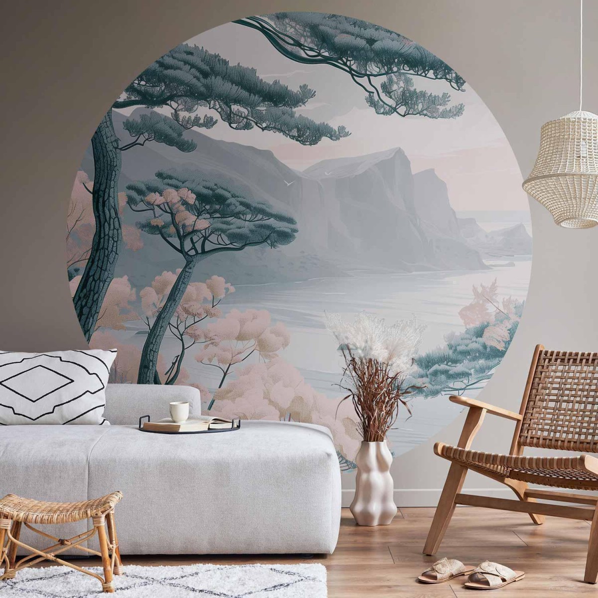 Entdecken Sie eine außergewöhnliche Wanddekoration mit unserer runden Fototapete, die eine perfekte Kombination aus Ästhetik und Funktionalität darstellt. Die universelle Kreisform fügt sich nahtlos sowohl in moderne als auch in klassische Inneneinrichtungen ein. Strapazierfähige und leicht zu montierende runde Fototapeten helfen, auf einfache Weise einen originellen Raum zu schaffen – zu Hause, im Büro oder in der Gastronomie. „Runde Fototapete - Blue coast in delicate colours” ist in verschiedenen Größen erhältlich und ermöglicht so eine perfekte Anpassung an die dekorierte Fläche. Die Investition in eine runde Fototapete ist nicht nur eine visuelle Aufwertung des Interieurs, sondern auch eine praktische Lösung zur Unterstützung des psychischen Wohlbefindens. Ein ästhetisches Umfeld beeinflusst Wohlbefinden und Produktivität, und sorgfältig ausgewählte Dekorelemente können die Stimmung deutlich verbessern oder die Kreativität anregen.