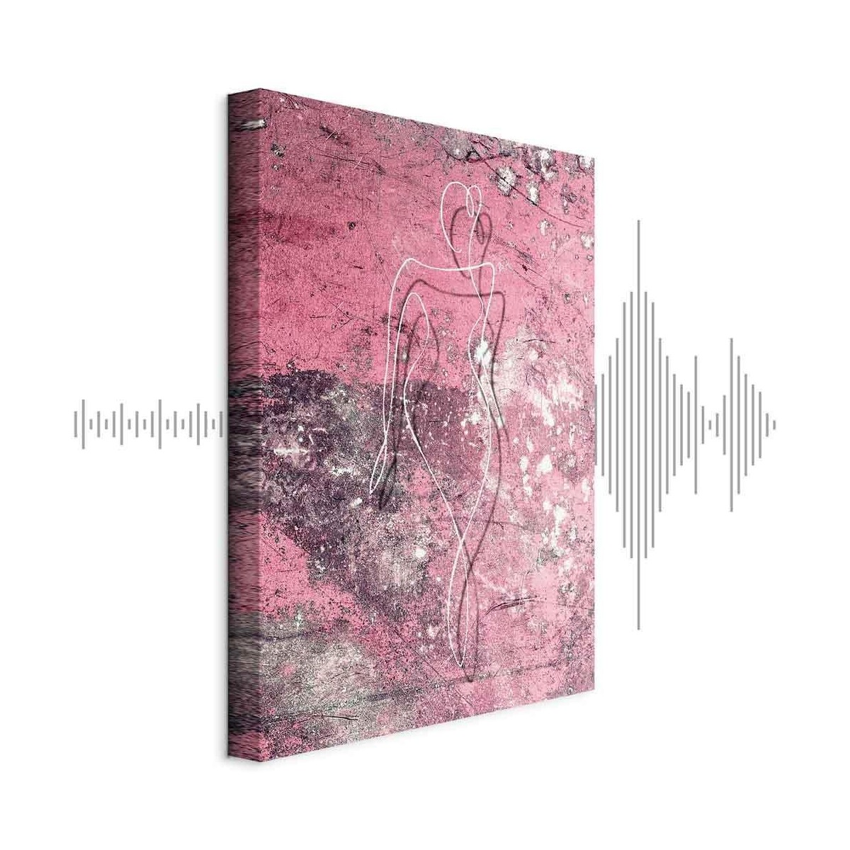 Bilder Wohnzimmer. Dekorieren Sie die Wände in Ihrem privaten Bereich mit einem Bild "Leinwandbild - Figure on Pink Background (1-part) - Female Silhouette in Marble". Wir empfehlen