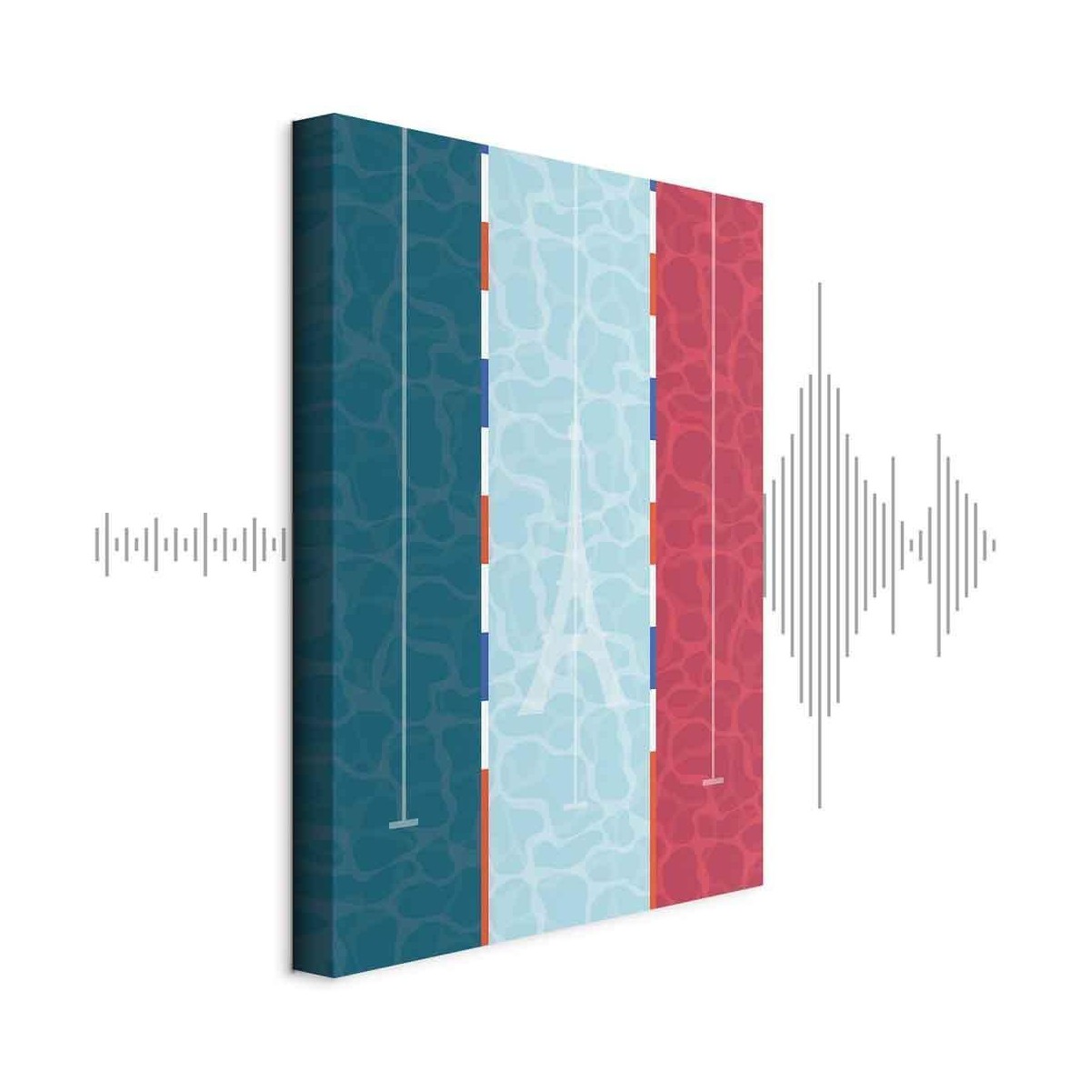Bilder Wohnzimmer. Dekorieren Sie die Wände in Ihrem privaten Bereich mit einem Bild "Leinwandbild - Graphic Illustration of a Swimming Pool Against the Backdrop of the French Flag". Wir empfehlen