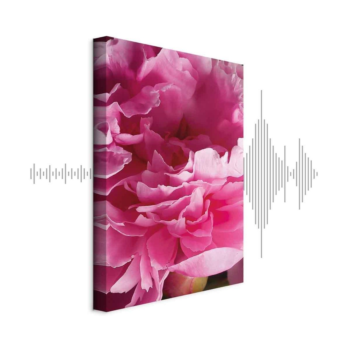 Bilder Wohnzimmer. Dekorieren Sie die Wände in Ihrem privaten Bereich mit einem Bild "Leinwandbild - Blossom of Beauty (1-part) - Pink Peony Flower Embraced by Nature". Wir empfehlen