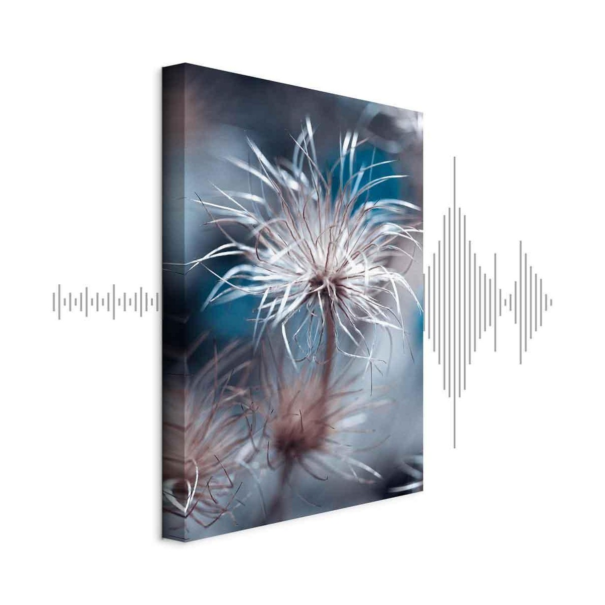 Bilder Wohnzimmer. Dekorieren Sie die Wände in Ihrem privaten Bereich mit einem Bild "Leinwandbild - Plant in Blues (1 Part) Vertical". Wir empfehlen