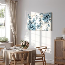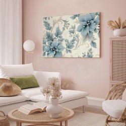 Bilder Wohnzimmer. Dekorieren Sie die Wände in Ihrem privaten Bereich mit einem Bild "Leinwandbild - Turquoise Flowers in Retro Ambience Floristic Ornaments". Wir empfehlen