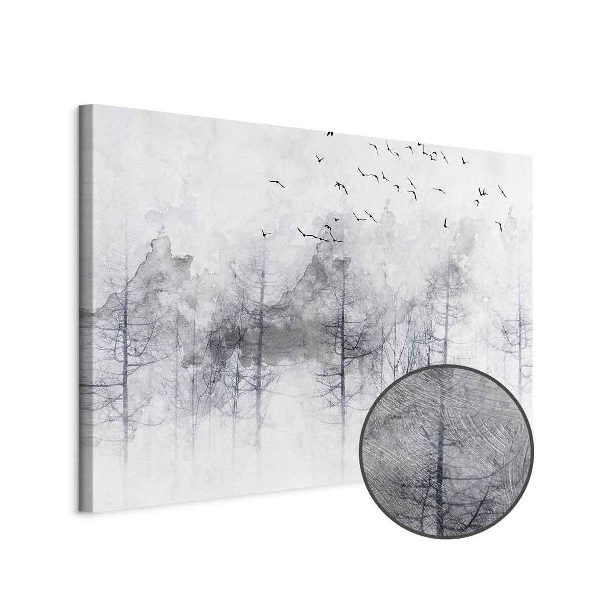 Bilder Wohnzimmer. Dekorieren Sie die Wände in Ihrem privaten Bereich mit einem Bild "Leinwandbild - Winter Forest (1 Part) Wide". Wir empfehlen