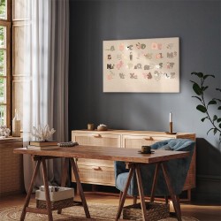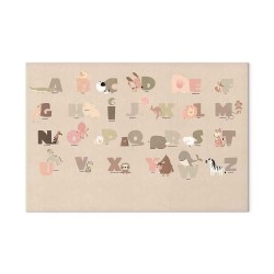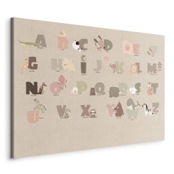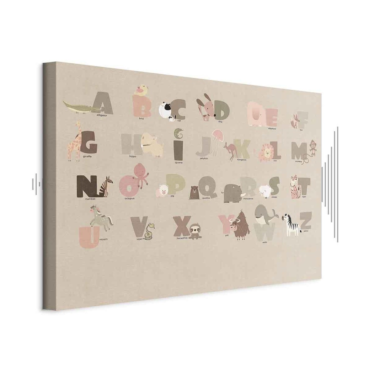 Bilder Wohnzimmer. Dekorieren Sie die Wände in Ihrem privaten Bereich mit einem Bild "Leinwandbild - Alphabet at the Zoo - Joyful Animals and Their Names on a Beige Background". Wir empfehlen