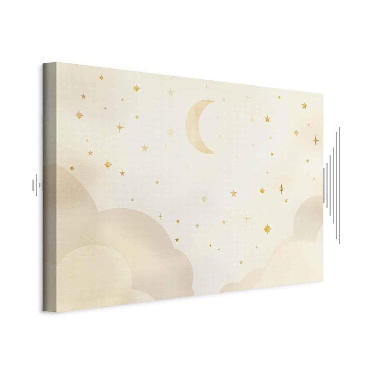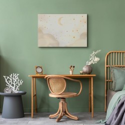 Bilder Wohnzimmer. Dekorieren Sie die Wände in Ihrem privaten Bereich mit einem Bild "Leinwandbild - Bright Night - Moon Accompanied by Many Stars on a Light Background". Wir empfehlen