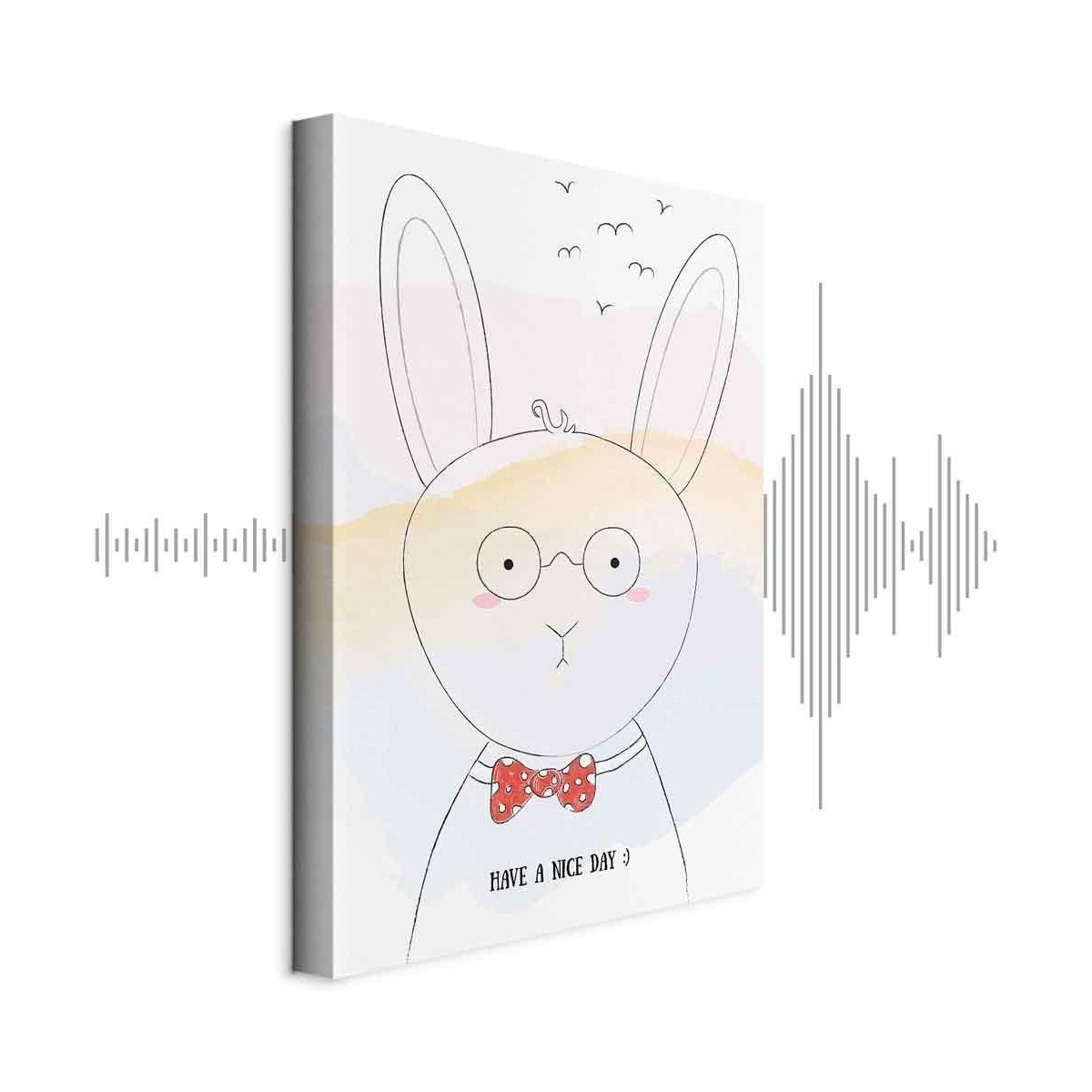 Bilder Wohnzimmer Unsere Bilder sind sicher und geruchsneutral und eignen sich daher ideal für Kinderzimmer. Die Größe wird Ihr Kind sicher beeindrucken! Bilder für Schlafzimmer sind ein echter Blickfang, genauso wie Bilder Wohnzimmer. Dekorieren Sie die Wände in Ihrem privaten Bereich mit einem Bild "Leinwandbild - Greetings from Rabbit (1 Part) Vertical". Wir empfehlen Bilder für Schlafzimmer , die Sie beruhigen und in eine erholsame Stimmung versetzen. Bilder aus unserer Kollektion werden Ihrem Interieur eine außergewöhnliche Atmosphäre verleihen. Unabhängig vom Raum schaffen auch Kunst Bilder eine gemütliche Atmosphäre für die Gäste. Massive Holzrahmen unterstreichen den einzigartigen Charakter der Schlafzimmerbilder, und ein schneller und sicherer Versand ist ein weiterer Vorteil, der für diese Wanddekorationen spricht Leinwandbilder sind in fünf Varianten erhältlich, sodass jeder Kunde die perfekte Option für seine Bedürfnisse findet.Die Variante auf Strukturleinwand (Standard) ist eine universelle Dekoration, die das Haushaltsbudget nicht belastet.Für Liebhaber edler Materialien ist ein Druck auf italienischer Leinwand aus 100 % Baumwolle die ideale Wahl.Und für Fans der Malerei? Hier überzeugt die außergewöhnliche Premium-Print-Technik – ein Bild, das auf Strukturleinwand gedruckt und von Hand mit einer Schicht transparenten Gels überzogen wird, die die Pinselstriche eines Künstlers imitiert – ein „wie gemalt“-Effekt, aber zu einem günstigeren Preis.Die Variante im soliden Holzrahmen des Typs American Box mit Tiefeneffekt (zwei Rahmenfarben zur Auswahl, Motiv auf Strukturleinwand gedruckt) bietet eine klassische Lösung in neuer Form.Das Akustikbild (Druck auf Strukturleinwand mit einer zusätzlichen Schicht schallabsorbierendem Schaumstoff) ist dagegen ein Volltreffer für alle, die Ästhetik mit Funktionalität verbinden möchten.Zwar sind die beiden letzten Optionen nur für bestimmte Größen von einteiligen Bildern verfügbar, doch bei allen Varianten legen wir GRATIS die erforderliche Anzahl an Haken und Nägeln zur Montage bei.