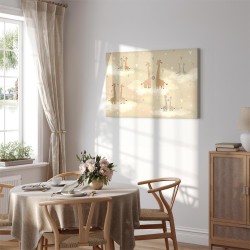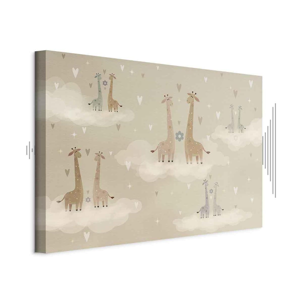 Bilder Wohnzimmer Unsere Bilder sind sicher und geruchsneutral und eignen sich daher ideal für Kinderzimmer. Die Größe wird Ihr Kind sicher beeindrucken! Bilder für Schlafzimmer sind ein echter Blickfang, genauso wie Bilder Wohnzimmer. Dekorieren Sie die Wände in Ihrem privaten Bereich mit einem Bild "Leinwandbild - Love - Colorful Giraffes Floating on Clouds Among Hearts and Stars". Wir empfehlen Bilder für Schlafzimmer , die Sie beruhigen und in eine erholsame Stimmung versetzen. Bilder aus unserer Kollektion werden Ihrem Interieur eine außergewöhnliche Atmosphäre verleihen. Unabhängig vom Raum schaffen auch Kunst Bilder eine gemütliche Atmosphäre für die Gäste. Massive Holzrahmen unterstreichen den einzigartigen Charakter der Schlafzimmerbilder, und ein schneller und sicherer Versand ist ein weiterer Vorteil, der für diese Wanddekorationen spricht Leinwandbilder sind in fünf Varianten erhältlich, sodass jeder Kunde die perfekte Option für seine Bedürfnisse findet.Die Variante auf Strukturleinwand (Standard) ist eine universelle Dekoration, die das Haushaltsbudget nicht belastet.Für Liebhaber edler Materialien ist ein Druck auf italienischer Leinwand aus 100 % Baumwolle die ideale Wahl.Und für Fans der Malerei? Hier überzeugt die außergewöhnliche Premium-Print-Technik – ein Bild, das auf Strukturleinwand gedruckt und von Hand mit einer Schicht transparenten Gels überzogen wird, die die Pinselstriche eines Künstlers imitiert – ein „wie gemalt“-Effekt, aber zu einem günstigeren Preis.Die Variante im soliden Holzrahmen des Typs American Box mit Tiefeneffekt (zwei Rahmenfarben zur Auswahl, Motiv auf Strukturleinwand gedruckt) bietet eine klassische Lösung in neuer Form.Das Akustikbild (Druck auf Strukturleinwand mit einer zusätzlichen Schicht schallabsorbierendem Schaumstoff) ist dagegen ein Volltreffer für alle, die Ästhetik mit Funktionalität verbinden möchten.Zwar sind die beiden letzten Optionen nur für bestimmte Größen von einteiligen Bildern verfügbar, doch bei allen Varianten legen wir GRATIS die erforderliche Anzahl an Haken und Nägeln zur Montage bei.