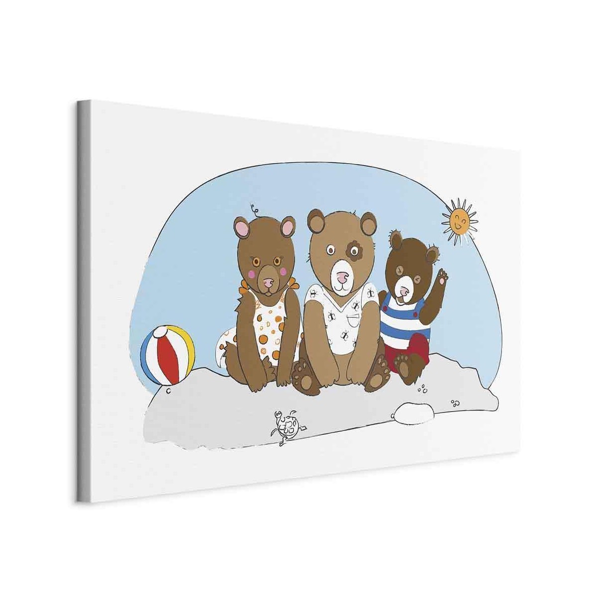 Bilder Wohnzimmer. Dekorieren Sie die Wände in Ihrem privaten Bereich mit einem Bild "Leinwandbild - Teddy Bears on the Beach (1 Part) Wide". Wir empfehlen