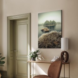 Bilder Wohnzimmer. Dekorieren Sie die Wände in Ihrem privaten Bereich mit einem Bild "Leinwandbild - Autumn in the Wetlands (1 Part) Vertical". Wir empfehlen