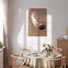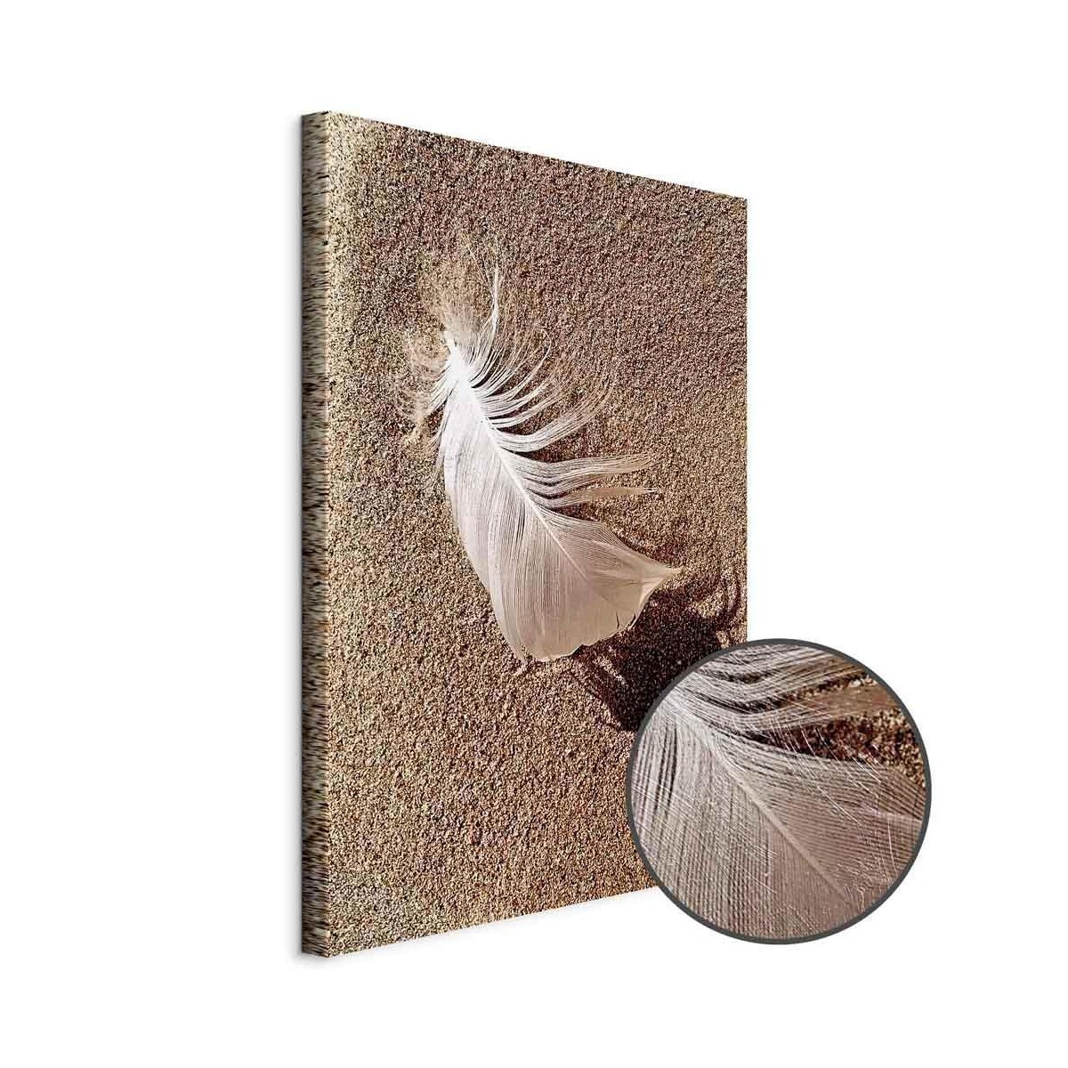 Bilder Wohnzimmer. Dekorieren Sie die Wände in Ihrem privaten Bereich mit einem Bild "Leinwandbild - Feather on the Sand (1 Part) Vertical". Wir empfehlen