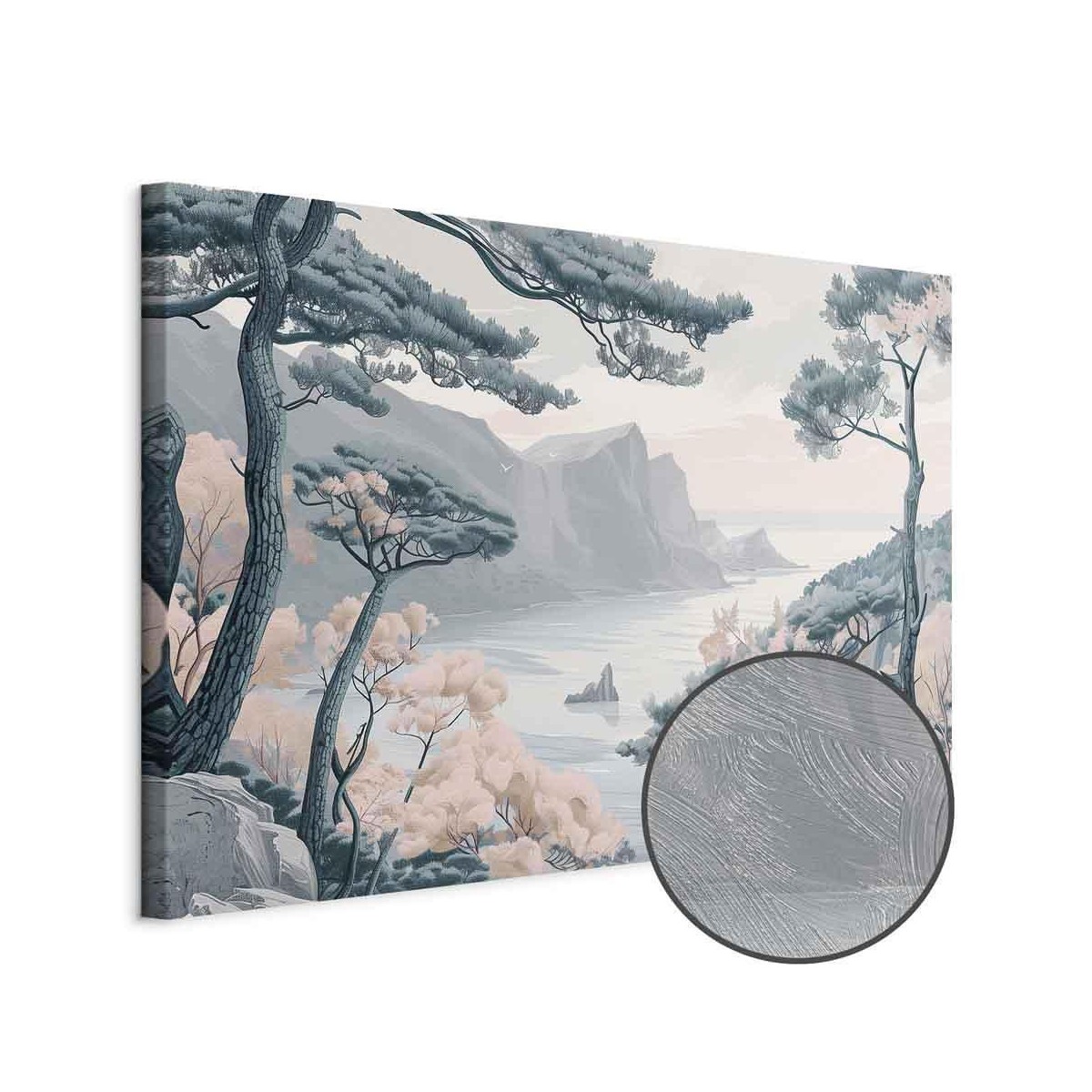 Bilder Wohnzimmer Unsere Bilder sind sicher und geruchsneutral und eignen sich daher ideal für Kinderzimmer. Die Größe wird Ihr Kind sicher beeindrucken! Bilder für Schlafzimmer sind ein echter Blickfang, genauso wie Bilder Wohnzimmer. Dekorieren Sie die Wände in Ihrem privaten Bereich mit einem Bild "Leinwandbild - Mountainous Coast with Trees and Rocks in Light Pastel Blues". Wir empfehlen Bilder für Schlafzimmer , die Sie beruhigen und in eine erholsame Stimmung versetzen. Bilder aus unserer Kollektion werden Ihrem Interieur eine außergewöhnliche Atmosphäre verleihen. Unabhängig vom Raum schaffen auch Kunst Bilder eine gemütliche Atmosphäre für die Gäste. Massive Holzrahmen unterstreichen den einzigartigen Charakter der Schlafzimmerbilder, und ein schneller und sicherer Versand ist ein weiterer Vorteil, der für diese Wanddekorationen spricht Leinwandbilder sind in fünf Varianten erhältlich, sodass jeder Kunde die perfekte Option für seine Bedürfnisse findet.Die Variante auf Strukturleinwand (Standard) ist eine universelle Dekoration, die das Haushaltsbudget nicht belastet.Für Liebhaber edler Materialien ist ein Druck auf italienischer Leinwand aus 100 % Baumwolle die ideale Wahl.Und für Fans der Malerei? Hier überzeugt die außergewöhnliche Premium-Print-Technik – ein Bild, das auf Strukturleinwand gedruckt und von Hand mit einer Schicht transparenten Gels überzogen wird, die die Pinselstriche eines Künstlers imitiert – ein „wie gemalt“-Effekt, aber zu einem günstigeren Preis.Die Variante im soliden Holzrahmen des Typs American Box mit Tiefeneffekt (zwei Rahmenfarben zur Auswahl, Motiv auf Strukturleinwand gedruckt) bietet eine klassische Lösung in neuer Form.Das Akustikbild (Druck auf Strukturleinwand mit einer zusätzlichen Schicht schallabsorbierendem Schaumstoff) ist dagegen ein Volltreffer für alle, die Ästhetik mit Funktionalität verbinden möchten.Zwar sind die beiden letzten Optionen nur für bestimmte Größen von einteiligen Bildern verfügbar, doch bei allen Varianten legen wir GRATIS die erforderliche Anzahl an Haken und Nägeln zur Montage bei.
