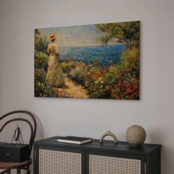 Bilder Wohnzimmer. Dekorieren Sie die Wände in Ihrem privaten Bereich mit einem Bild "Leinwandbild - Nostalgic impression - a pensive woman contemplating". Wir empfehlen