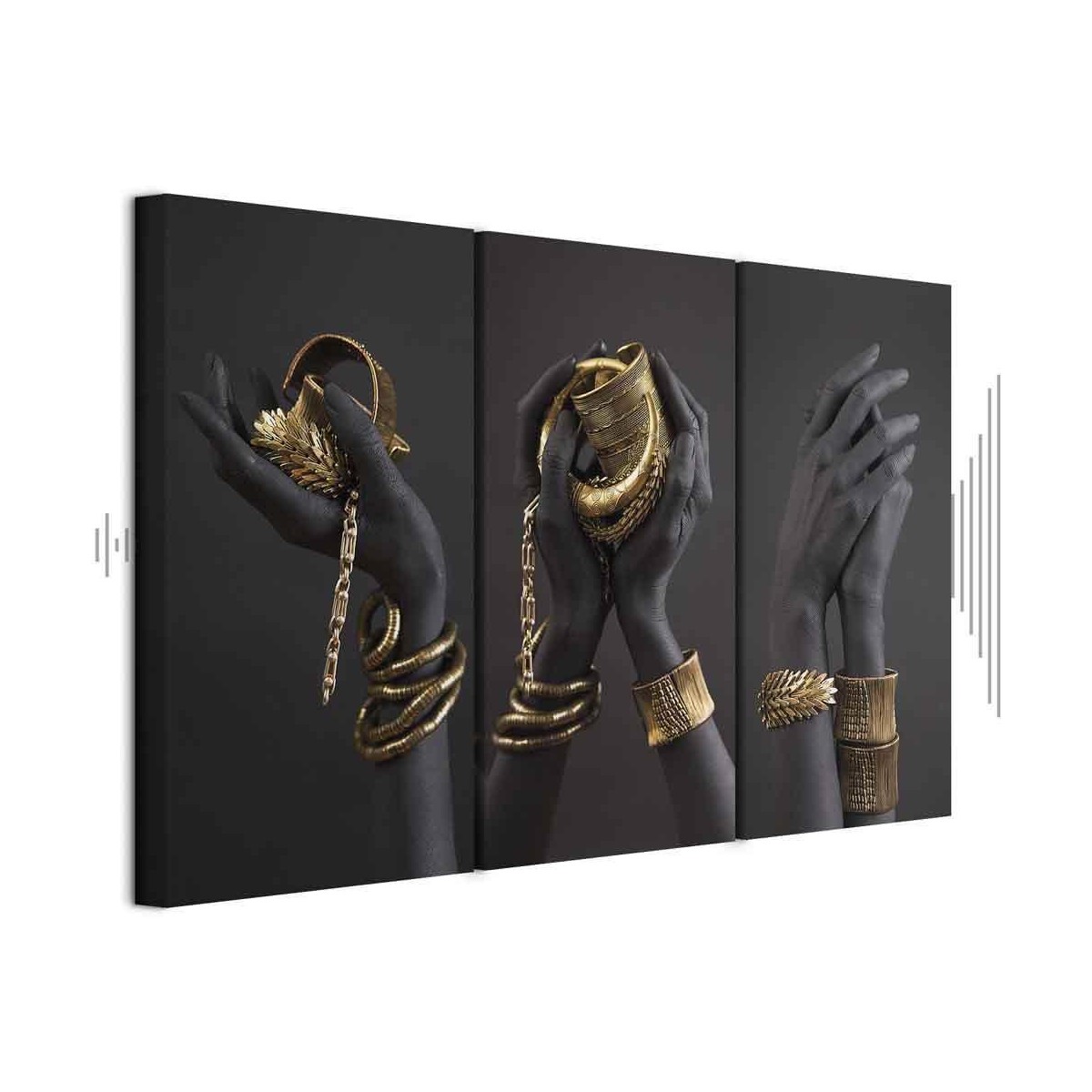 Bilder Wohnzimmer. Dekorieren Sie die Wände in Ihrem privaten Bereich mit einem Bild "Leinwandbild - Midass Touch (3 Parts)". Wir empfehlen