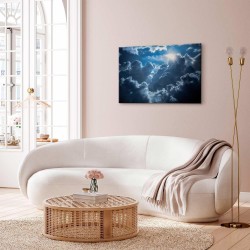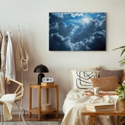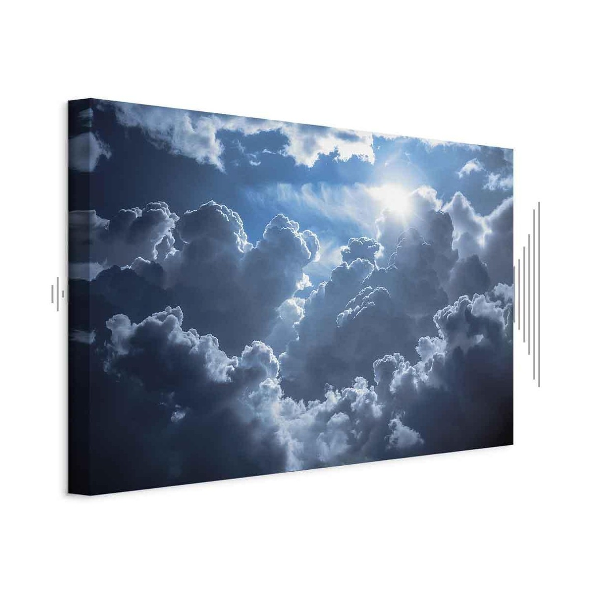 Bilder Wohnzimmer. Dekorieren Sie die Wände in Ihrem privaten Bereich mit einem Bild "Leinwandbild - Animated Scenery: The Sun Battling with Clouds". Wir empfehlen