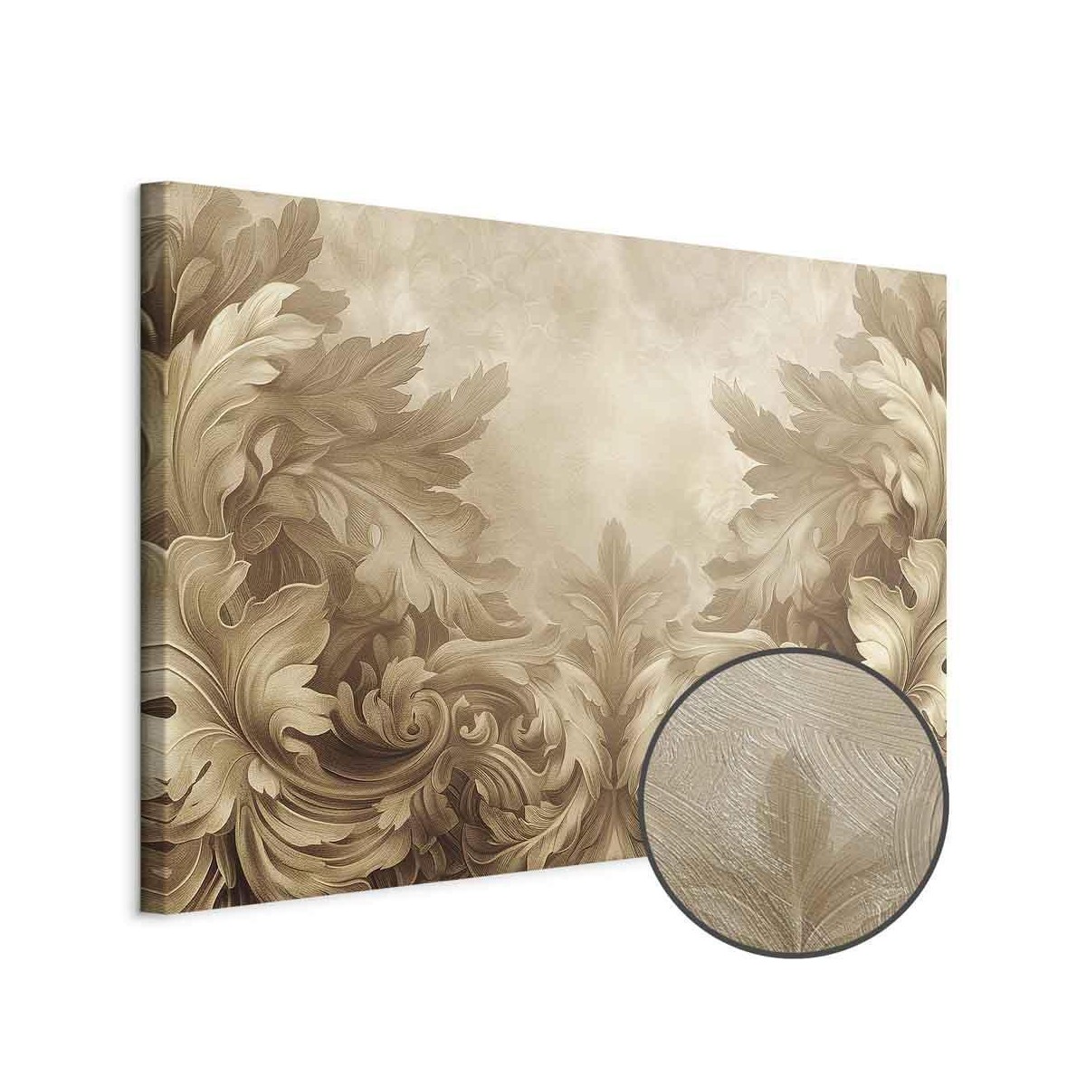 Bilder Wohnzimmer. Dekorieren Sie die Wände in Ihrem privaten Bereich mit einem Bild "Leinwandbild - Carved Baroque Ornaments Rich Composition in Sepia Colors". Wir empfehlen