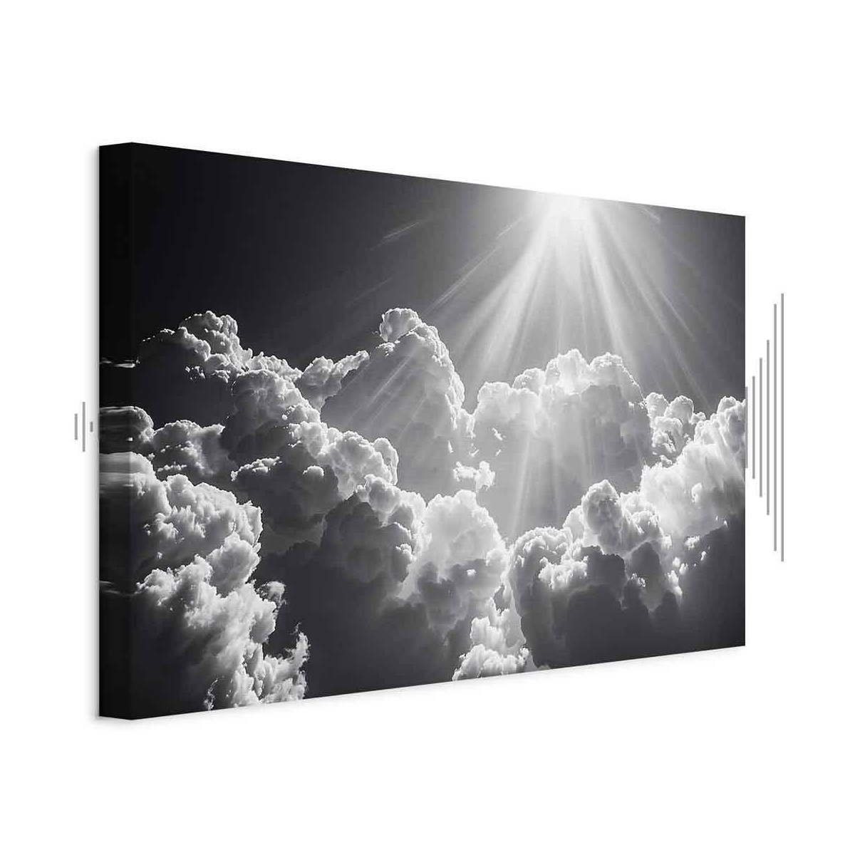Bilder Wohnzimmer. Dekorieren Sie die Wände in Ihrem privaten Bereich mit einem Bild "Leinwandbild - Hope in the Clouds: Inspiring Rays of the Sun – Awaken Emotions". Wir empfehlen