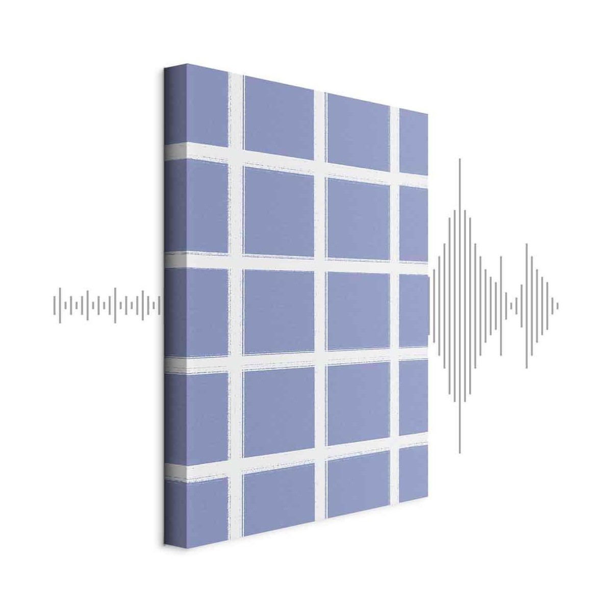 Bilder Wohnzimmer. Dekorieren Sie die Wände in Ihrem privaten Bereich mit einem Bild "Leinwandbild - Lines and Symmetry - Expressive White Grid on a Blue Background". Wir empfehlen