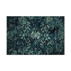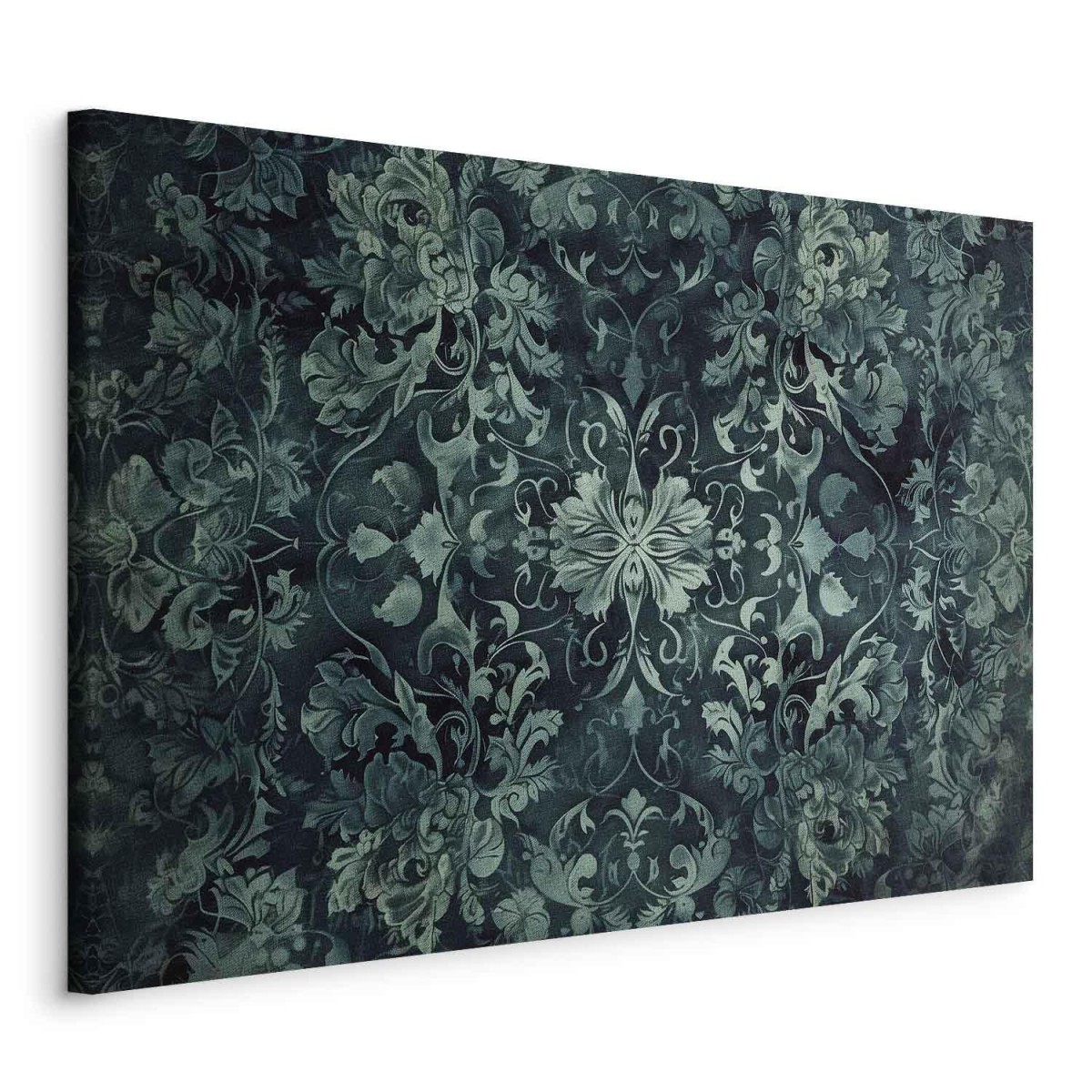 Bilder Wohnzimmer. Dekorieren Sie die Wände in Ihrem privaten Bereich mit einem Bild "Leinwandbild - Oriental Pattern Carpet: Emerald Ornaments and Worn Patterns". Wir empfehlen