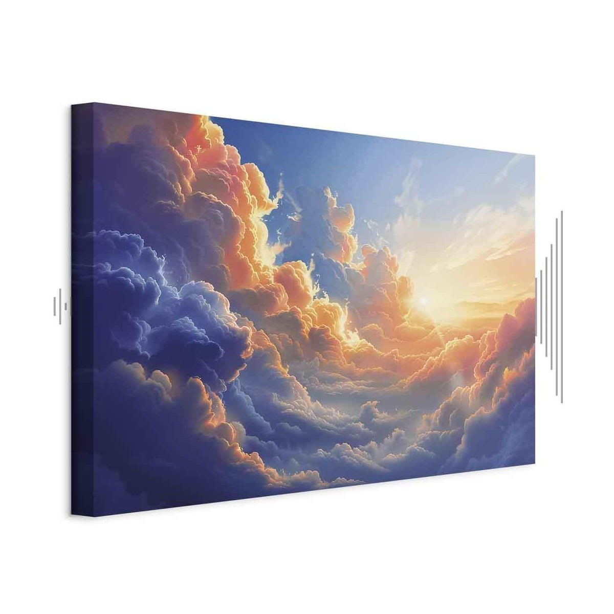Bilder Wohnzimmer. Dekorieren Sie die Wände in Ihrem privaten Bereich mit einem Bild "Leinwandbild - Sunset Over a Cloudy Sea: A Wonderful Symphony of Colors". Wir empfehlen