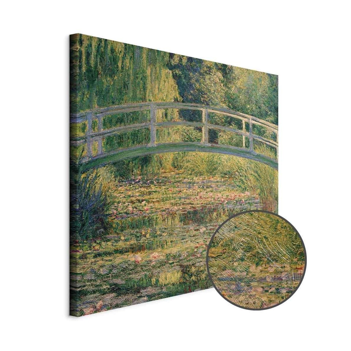 Bilder Wohnzimmer. Dekorieren Sie die Wände in Ihrem privaten Bereich mit einem Bild "Leinwandbild - Claude Monet – Bridge over a Pond of Water Lilies". Wir empfehlen