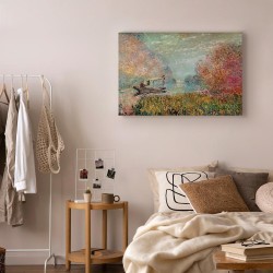 Bilder Wohnzimmer. Dekorieren Sie die Wände in Ihrem privaten Bereich mit einem Bild "Leinwandbild - Claude Monet – Boat on the Seine". Wir empfehlen