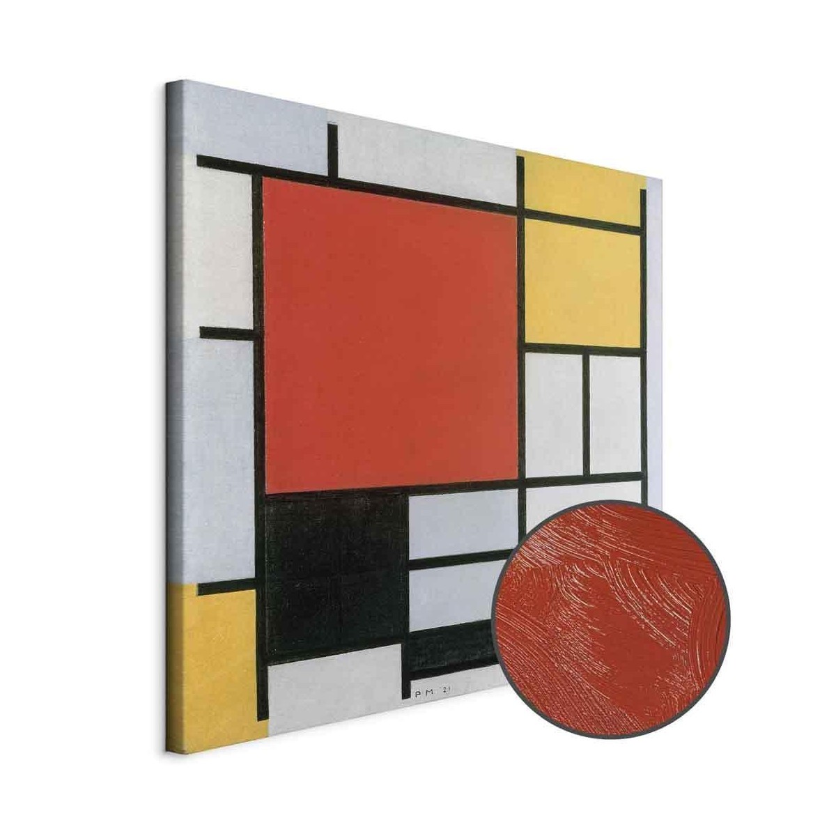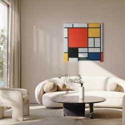 Bilder Wohnzimmer. Dekorieren Sie die Wände in Ihrem privaten Bereich mit einem Bild "Leinwandbild - Piet Mondrian – Composition with red, yellow. blue and black". Wir empfehlen