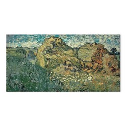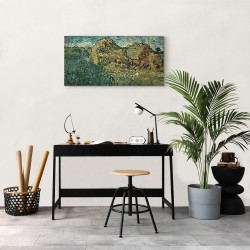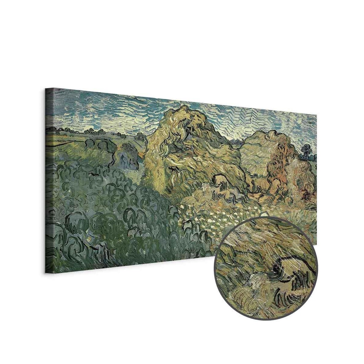 Bilder Wohnzimmer. Dekorieren Sie die Wände in Ihrem privaten Bereich mit einem Bild "Leinwandbild - Vincent Van Gogh – Field with Wheat Stacks". Wir empfehlen