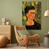 Bilder Wohnzimmer. Dekorieren Sie die Wände in Ihrem privaten Bereich mit einem Bild "Leinwandbild - Frida Kahlo – Self-Portrait with Bonito". Wir empfehlen