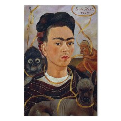 Bilder Wohnzimmer. Dekorieren Sie die Wände in Ihrem privaten Bereich mit einem Bild "Leinwandbild - Frida Kahlo – Self-Portrait with Changuito". Wir empfehlen