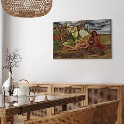Bilder Wohnzimmer. Dekorieren Sie die Wände in Ihrem privaten Bereich mit einem Bild "Leinwandbild - Frida Kahlo – Two Nudes in a Forest (The Earth Itself)". Wir empfehlen