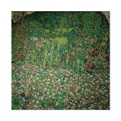 Bilder Wohnzimmer. Dekorieren Sie die Wände in Ihrem privaten Bereich mit einem Bild "Leinwandbild - Gustav Klimt – Gartenlandschaft mit Bergkuppe". Wir empfehlen