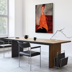 Bilder Wohnzimmer. Dekorieren Sie die Wände in Ihrem privaten Bereich mit einem Bild "Leinwandbild - Amedeo Modigliani – Jeanne Hebuterne in a Yellow Sweater". Wir empfehlen