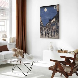 Bilder Wohnzimmer. Dekorieren Sie die Wände in Ihrem privaten Bereich mit einem Bild "Leinwandbild - Utagawa Hiroshige – Night time view of Saruwaka Street". Wir empfehlen