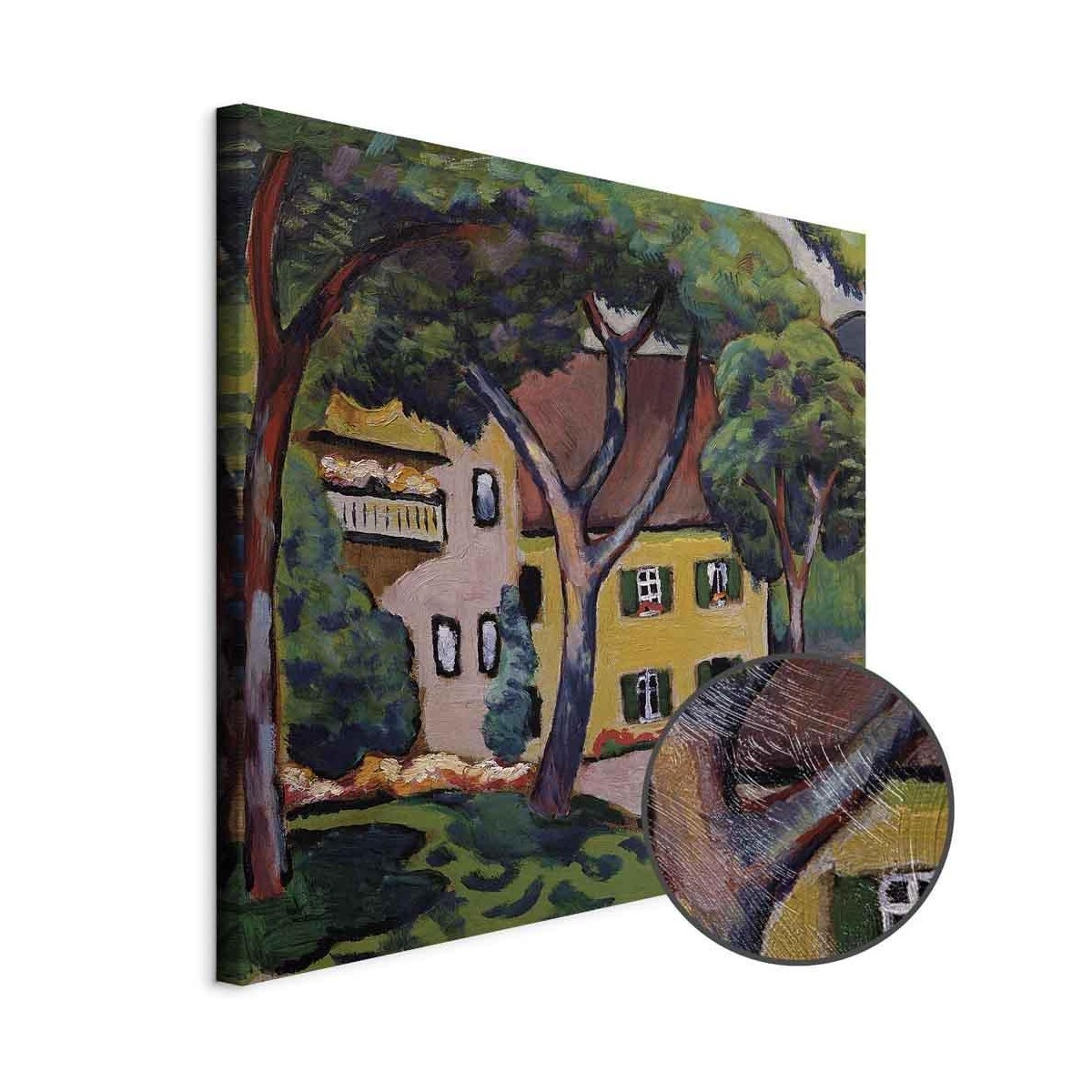 Bilder Wohnzimmer. Dekorieren Sie die Wände in Ihrem privaten Bereich mit einem Bild "Leinwandbild - August Macke – Staudacherhaus in Tegernsee". Wir empfehlen
