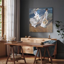 Bilder Wohnzimmer. Dekorieren Sie die Wände in Ihrem privaten Bereich mit einem Bild "Leinwandbild - Joaquín Sorolla y Bastida – Strolling along the Seashore". Wir empfehlen
