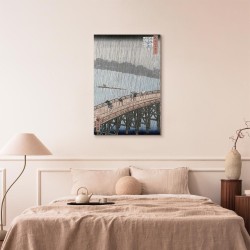 Bilder Wohnzimmer. Dekorieren Sie die Wände in Ihrem privaten Bereich mit einem Bild "Leinwandbild - Utagawa Hiroshige – Sudden Shower over Shin-Ohashi Bridge and Atake". Wir empfehlen