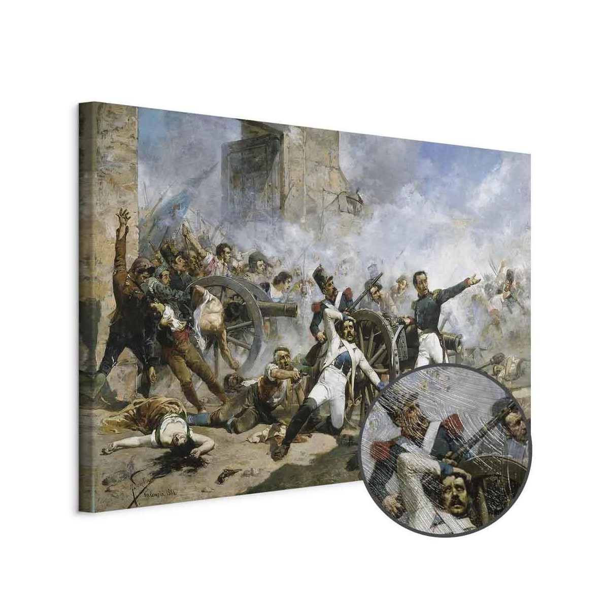 Bilder Wohnzimmer. Dekorieren Sie die Wände in Ihrem privaten Bereich mit einem Bild "Leinwandbild - Joaquín Sorolla y Bastida – The death of Pedro Velarde y Santillán during the defence of the Monteleon Artillery Barracks". Wir empfehlen