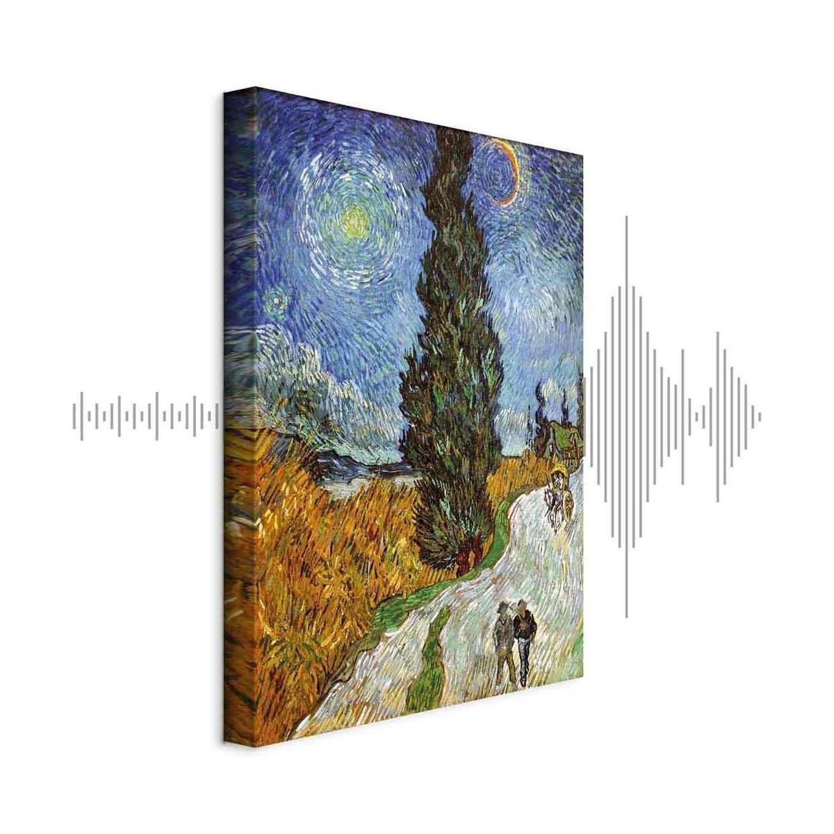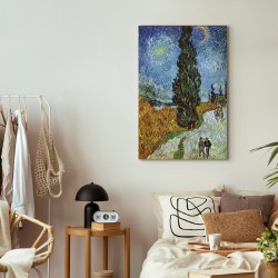 Bilder Wohnzimmer. Dekorieren Sie die Wände in Ihrem privaten Bereich mit einem Bild "Leinwandbild - Vincent van Gogh – Road with Cypress and Star". Wir empfehlen