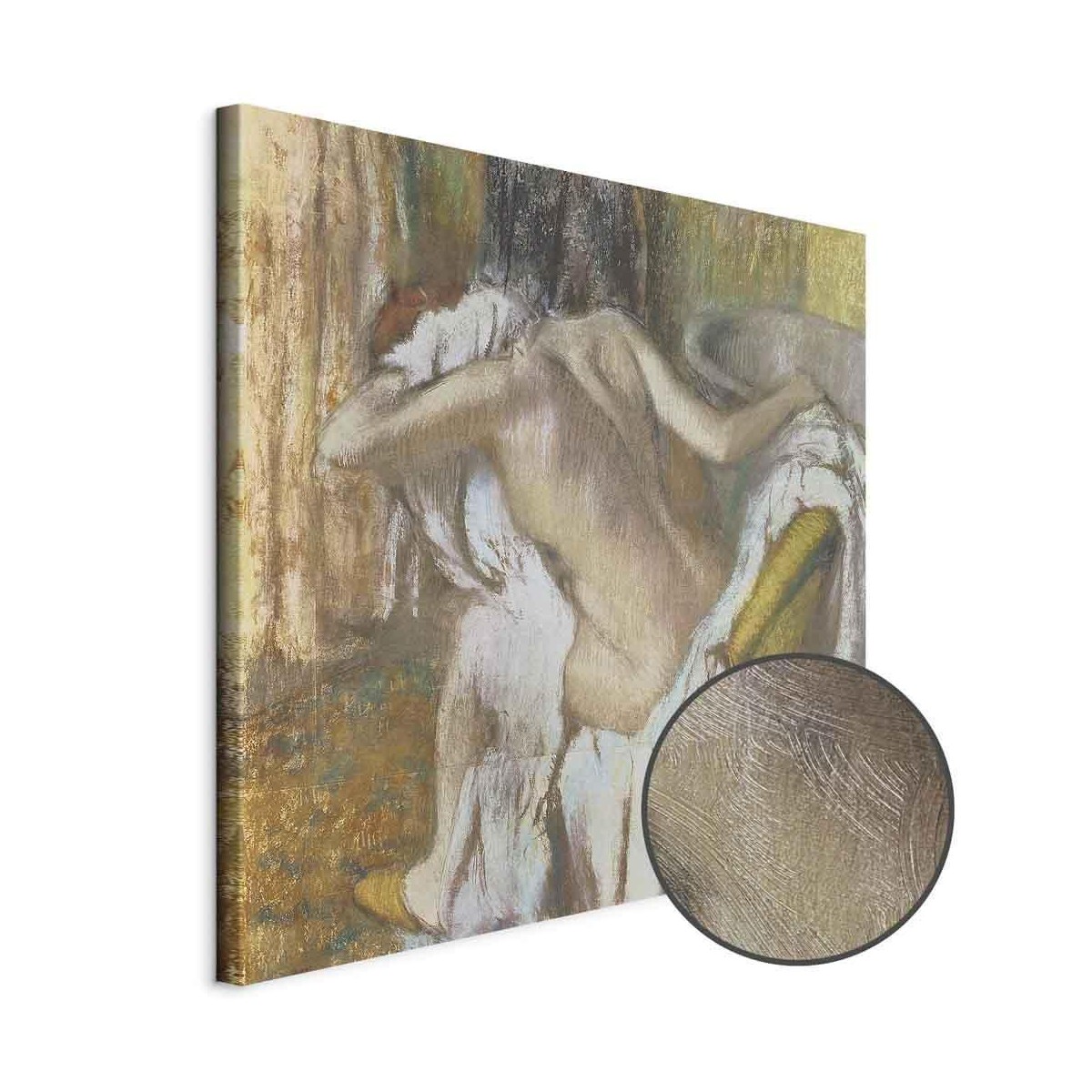 Bilder Wohnzimmer. Dekorieren Sie die Wände in Ihrem privaten Bereich mit einem Bild "Leinwandbild - Edgar Degas – Woman drying herself". Wir empfehlen