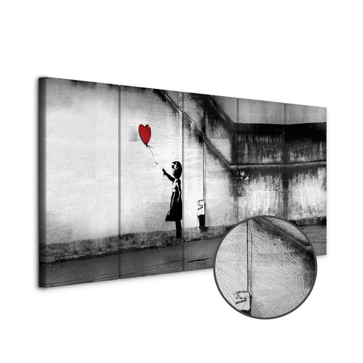 Bilder Wohnzimmer. Dekorieren Sie die Wände in Ihrem privaten Bereich mit einem Bild "Leinwandbild - Banksy: Runaway Balloon". Wir empfehlen