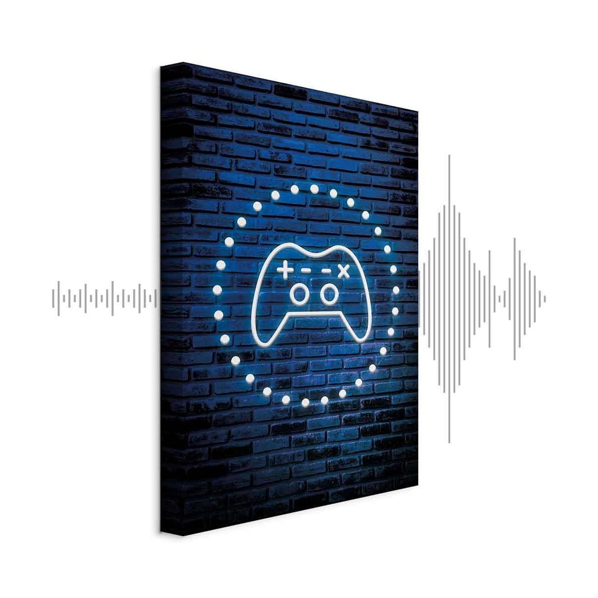 Bilder Wohnzimmer. Dekorieren Sie die Wände in Ihrem privaten Bereich mit einem Bild "Leinwandbild - Neon Gamepad". Wir empfehlen