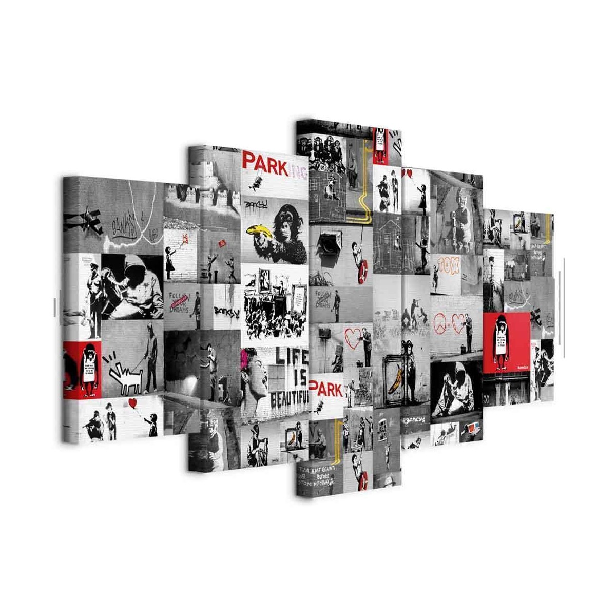 Bilder Wohnzimmer Unsere Bilder sind sicher und geruchsneutral und eignen sich daher ideal für Kinderzimmer. Die Größe wird Ihr Kind sicher beeindrucken! Bilder für Schlafzimmer sind ein echter Blickfang, genauso wie Bilder Wohnzimmer. Dekorieren Sie die Wände in Ihrem privaten Bereich mit einem Bild "Leinwandbild - Street Art: Banksy IV". Wir empfehlen Bilder für Schlafzimmer , die Sie beruhigen und in eine erholsame Stimmung versetzen. Bilder aus unserer Kollektion werden Ihrem Interieur eine außergewöhnliche Atmosphäre verleihen. Unabhängig vom Raum schaffen auch Kunst Bilder eine gemütliche Atmosphäre für die Gäste. Massive Holzrahmen unterstreichen den einzigartigen Charakter der Schlafzimmerbilder, und ein schneller und sicherer Versand ist ein weiterer Vorteil, der für diese Wanddekorationen spricht Leinwandbilder sind in fünf Varianten erhältlich, sodass jeder Kunde die perfekte Option für seine Bedürfnisse findet.Die Variante auf Strukturleinwand (Standard) ist eine universelle Dekoration, die das Haushaltsbudget nicht belastet.Für Liebhaber edler Materialien ist ein Druck auf italienischer Leinwand aus 100 % Baumwolle die ideale Wahl.Und für Fans der Malerei? Hier überzeugt die außergewöhnliche Premium-Print-Technik – ein Bild, das auf Strukturleinwand gedruckt und von Hand mit einer Schicht transparenten Gels überzogen wird, die die Pinselstriche eines Künstlers imitiert – ein „wie gemalt“-Effekt, aber zu einem günstigeren Preis.Die Variante im soliden Holzrahmen des Typs American Box mit Tiefeneffekt (zwei Rahmenfarben zur Auswahl, Motiv auf Strukturleinwand gedruckt) bietet eine klassische Lösung in neuer Form.Das Akustikbild (Druck auf Strukturleinwand mit einer zusätzlichen Schicht schallabsorbierendem Schaumstoff) ist dagegen ein Volltreffer für alle, die Ästhetik mit Funktionalität verbinden möchten.Zwar sind die beiden letzten Optionen nur für bestimmte Größen von einteiligen Bildern verfügbar, doch bei allen Varianten legen wir GRATIS die erforderliche Anzahl an Haken und Nägeln zur Montage bei.