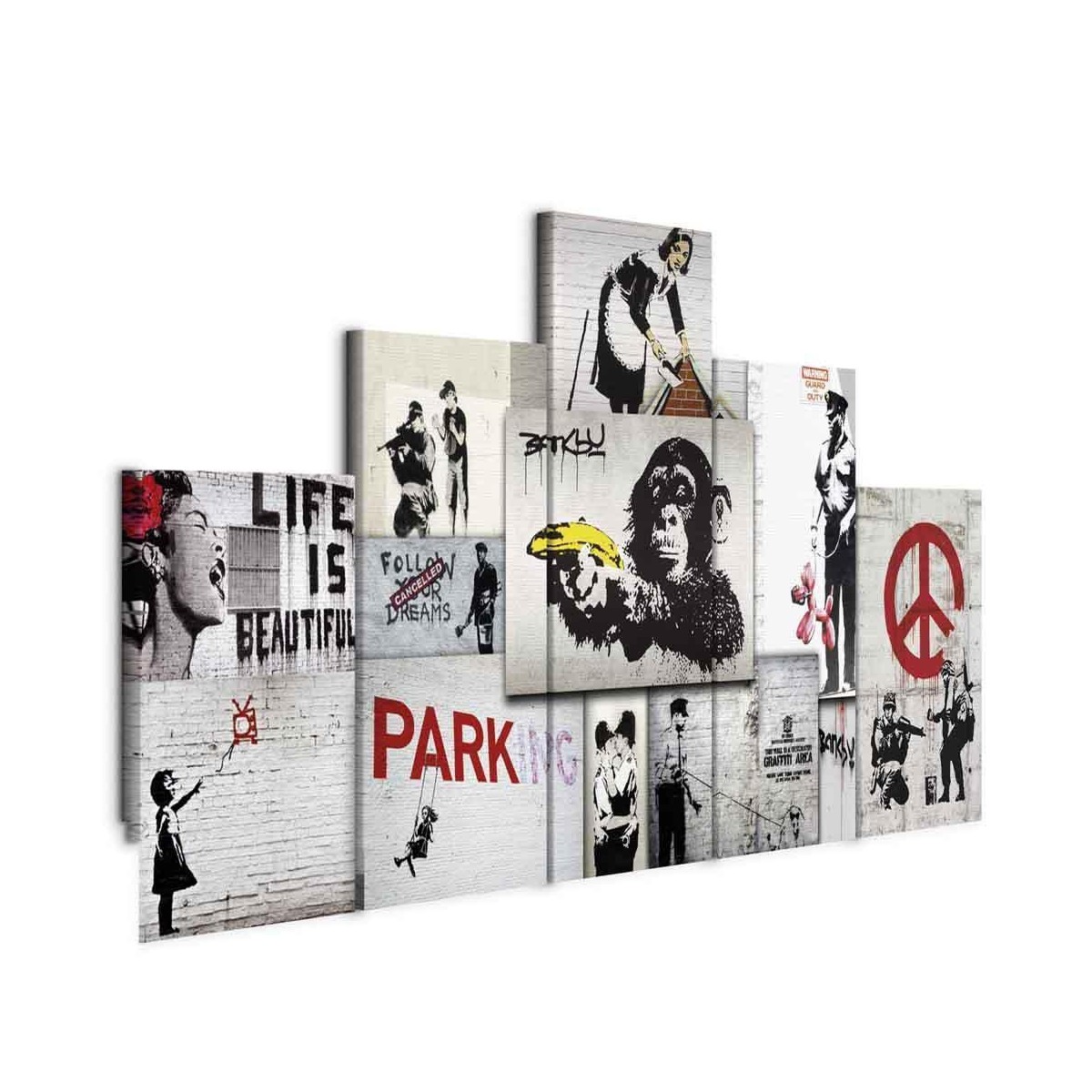 Bilder Wohnzimmer. Dekorieren Sie die Wände in Ihrem privaten Bereich mit einem Bild "Leinwandbild - Street Crimes: Banksy Art". Wir empfehlen